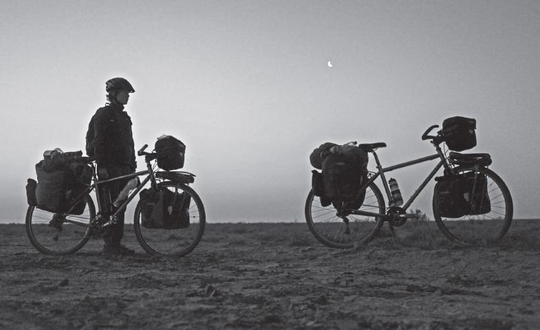 The authors explains to us the innate need to explore the worlds, her obsession with Mars, and gives us glimpses to her previous attempts at exploring our world. The expedition in itself is depicted realistically, and the cyclists never attempt to make the journey any exciting that it is. The reader feels as weary as the cyclist, the heart at times longing for the comfy couch and and good food, while the happiness of finding a welcoming is unfounded.